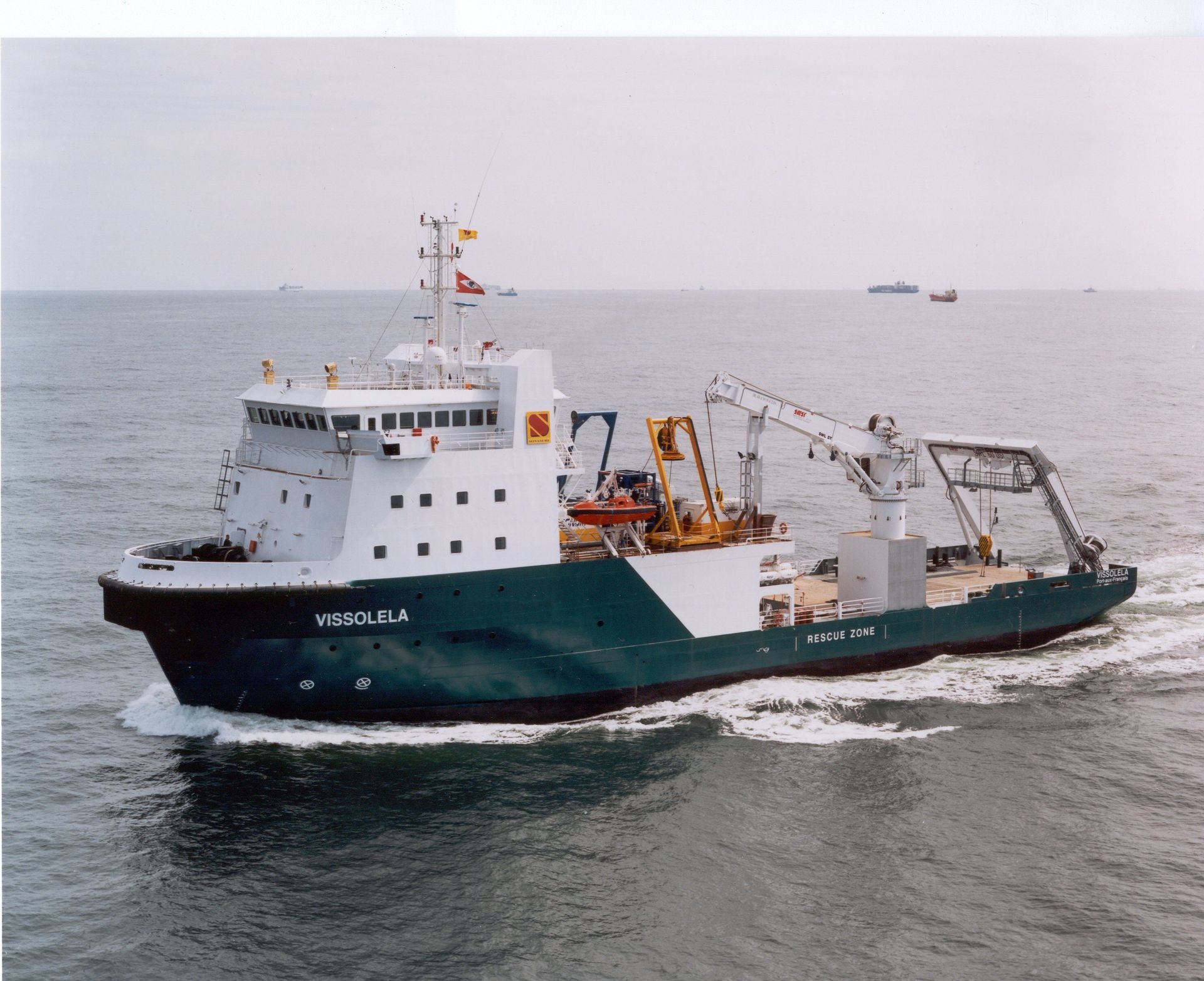 ButtonDesignd as a multi-purpose offshore service vessel, the Vissolela is equiped to perform various offshore operations.